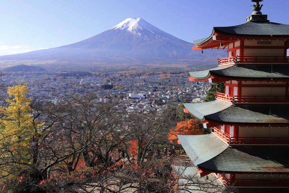 富士吉田市にある「新倉山浅間公園」は、五重塔と桜が美しい観光地としても人気のある富士山の絶景スポットです。桜の時期には桜と富士山、五重塔という日本らしい景色を写真に収めようと多くの写真家や観光客が集まります。