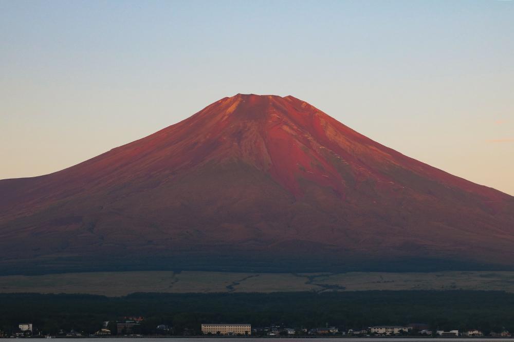 山中湖パノラマ台は赤富士の撮影スポットとしても人気があり、この季節には多くのカメラマンの姿が見られます。