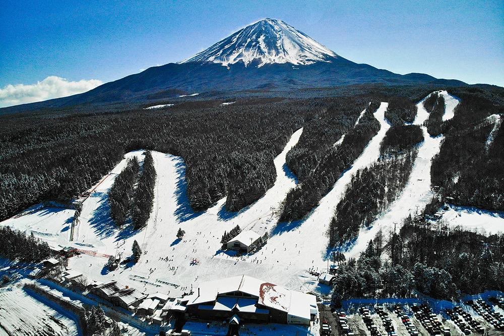 幅が広く緩やかな傾斜の「ファミリーコース」から上級者向けの「ダウンヒルコース」などバリエーション豊富なコースのほか、雪遊びができるエリアもあり、初心者や子供、上級者まで幅広い層から人気を集めています。雄大な富士山を背に滑る爽快感は他のスキー場では絶対に味わえません。
