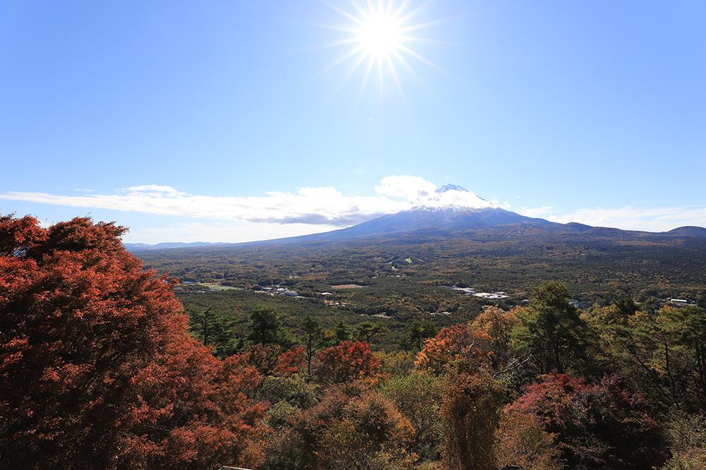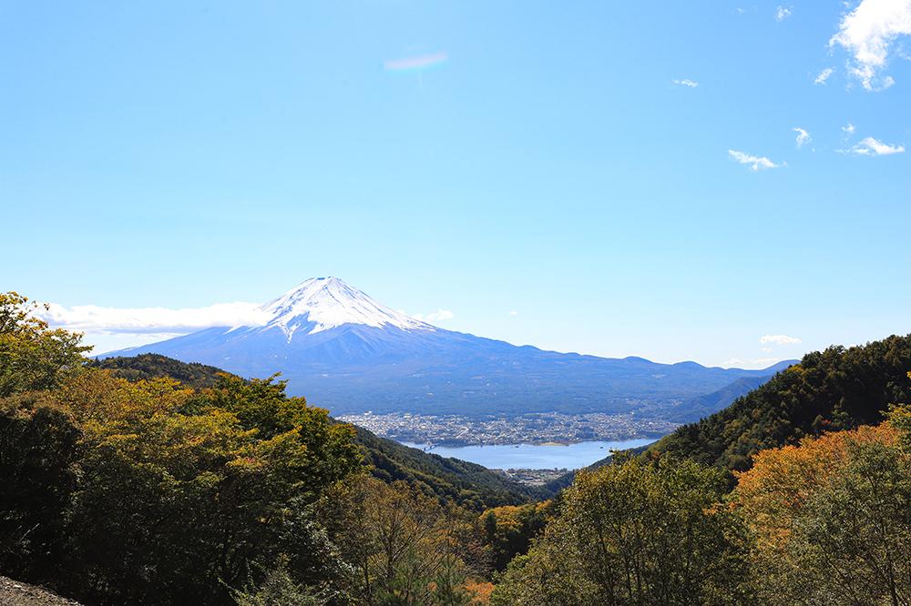 四季折々の自然の美しさを間近で感じることができ、特に秋の紅葉の季節は、赤や黄色に色づく木々越しに冠雪が進む富士山を一望できます。