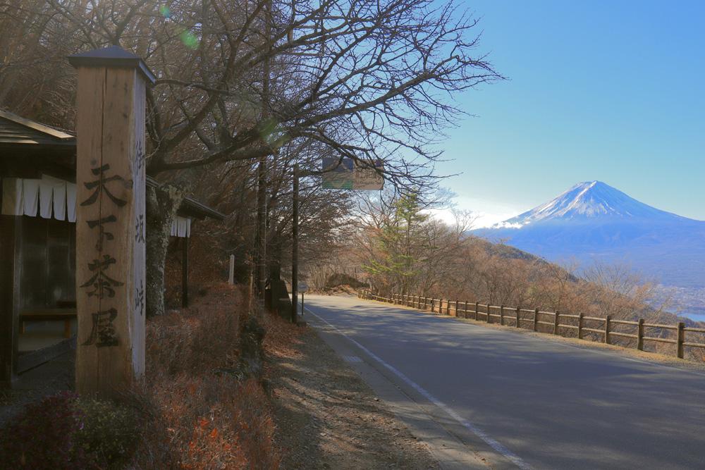 御坂峠にある「天下茶屋」は、山梨県の郷土料理であるほうとうを味わえるお店です。お店からの景色も素晴らしく、高台から見る富士山と河口湖はまさに絶景です。