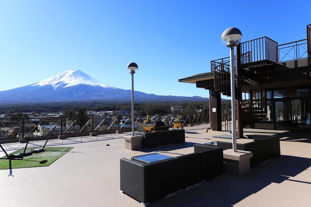 ふじさんデッキからは、河口湖の街並み越しに開放感ある富士山パノラマビューを堪能できます。また、ソファーやハンモックなどが設置されているため、くつろぎながら富士山や河口湖の街並みを一望できるスポットです。